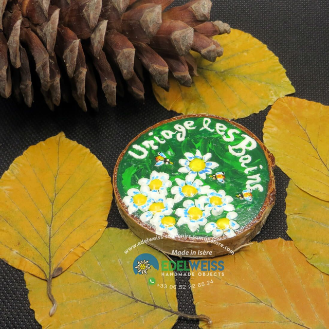 Les moments en plein air sont représentés par ces bourdons sur fleurs, un aimant réalisé entièrement à la main avec des couleurs acryliques sur une rondelle en bouleau. Scellé avec un vernis transparent non toxique pour protéger la peinture dans le temps. Pièce unique. Diamètre de l'aimant d'environ 6 cm, avec un puissant aimant néodyme appliqué au dos.