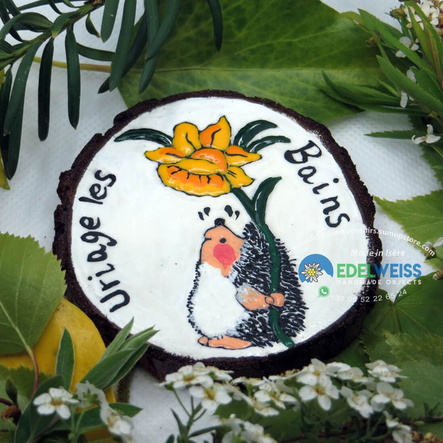 Les moments en plein air sont représentés par ce hérisson sympa, un aimant réalisé entièrement à la main avec des couleurs acryliques sur une rondelle en pin. Scellé avec un vernis transparent non toxique pour protéger la peinture dans le temps. Pièce unique. Diamètre de l'aimant d'environ 6,5 cm, avec un puissant aimant néodyme appliqué au dos.